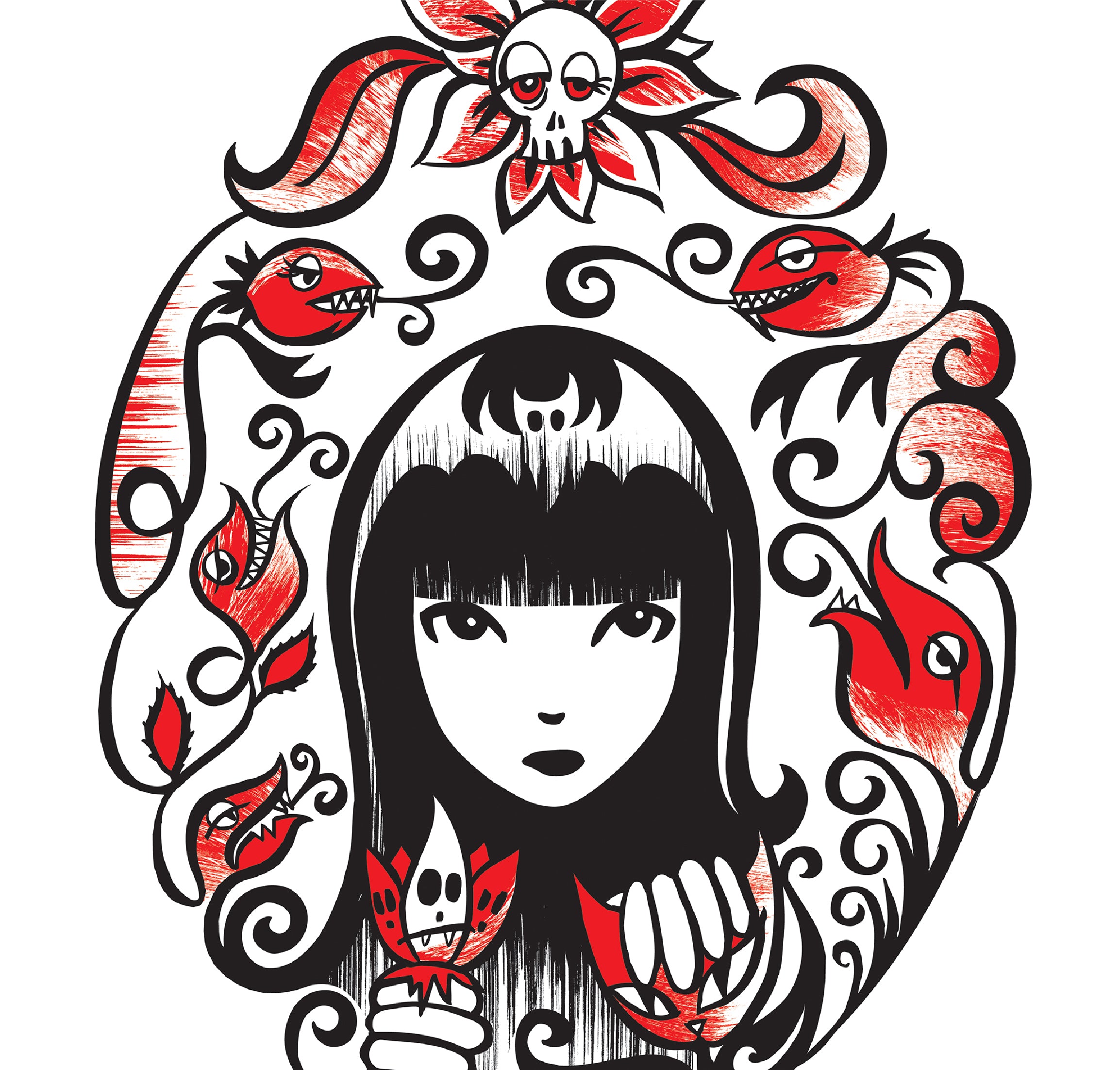 by Rob Reger, Emily the Strange Creator. Secret Garden on 16x22.5 inch limited edition high quality hand-printed serigraph. Watch Out They Bite!